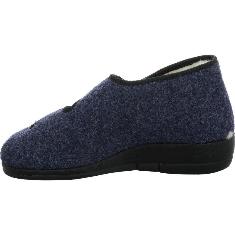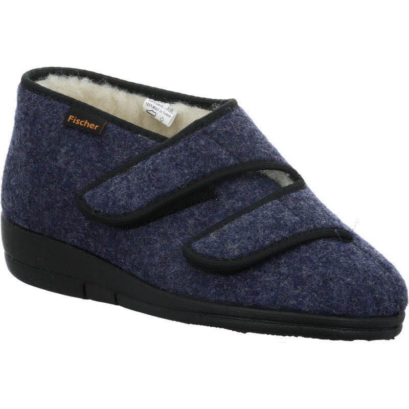 Verbands/Therapiehausschuhe von "Fischer Markenschuhe" in blauem Filzloden in der Weite "L". Warmgefüttert mit Schurwolle.