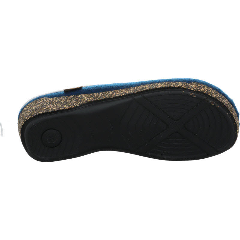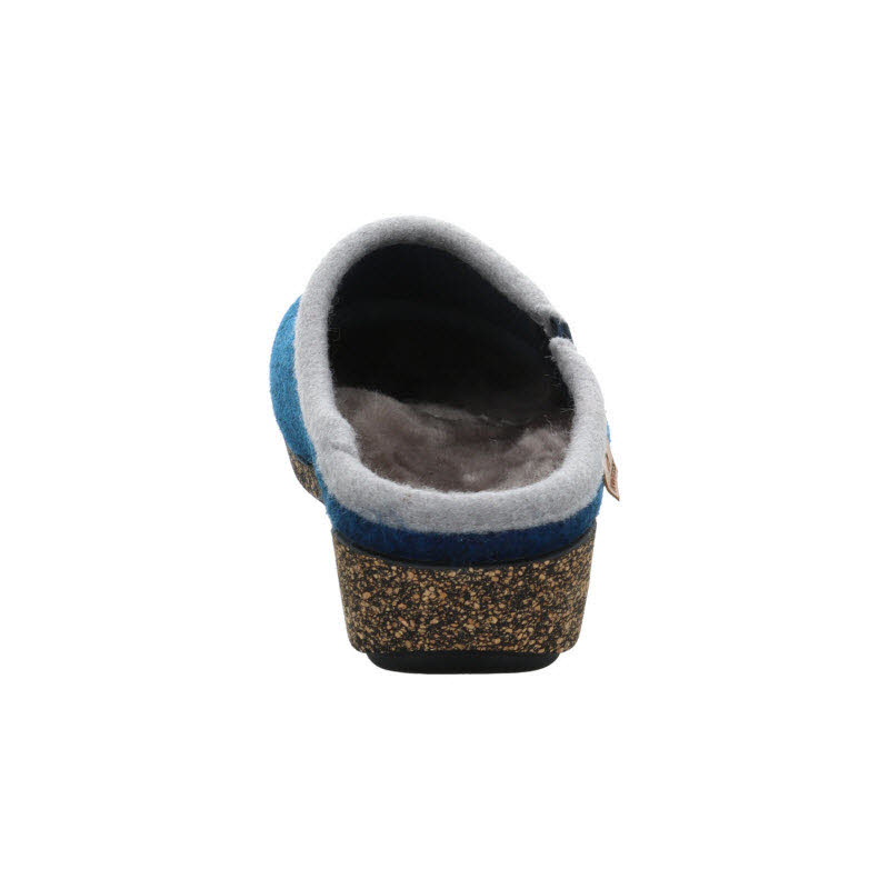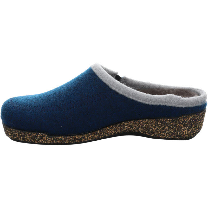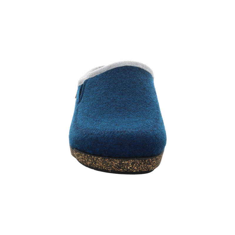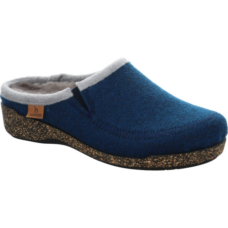 Blaue Filzhausschuhe von Hartjes mit einem herausnehmbarem Fußbett das mit Lammfell überzogen ist.