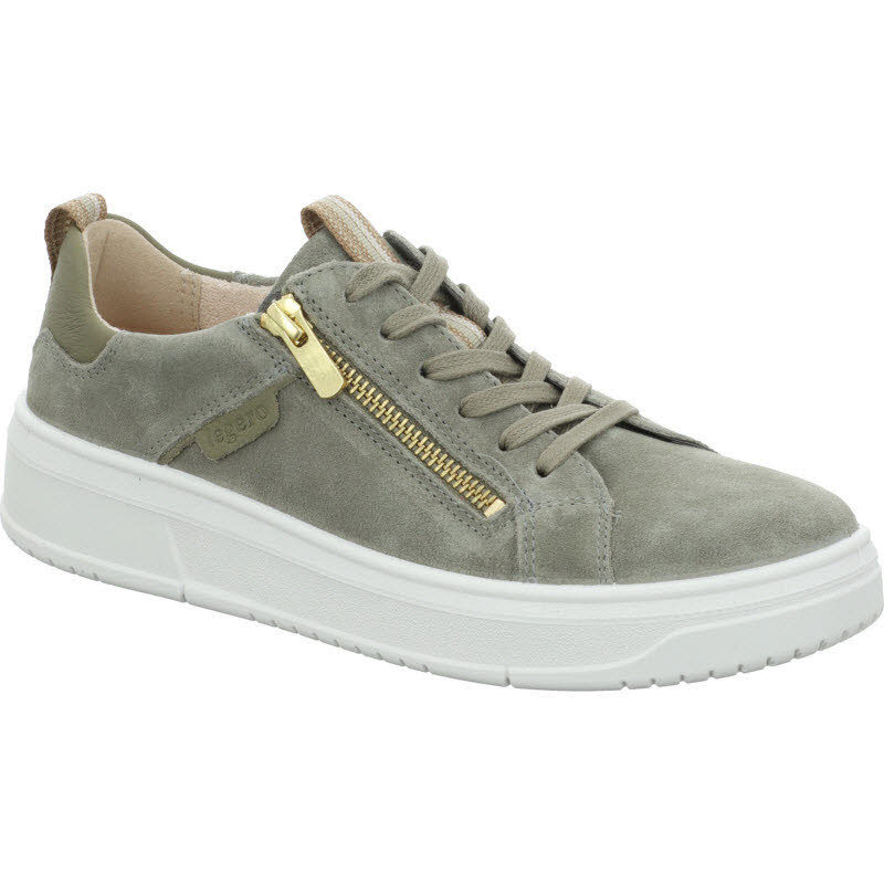Bequemer Sneaker von Legero in grünem Veloursleder. Mit seitlichem Reißverschluss, für ein komfortables Anziehen.