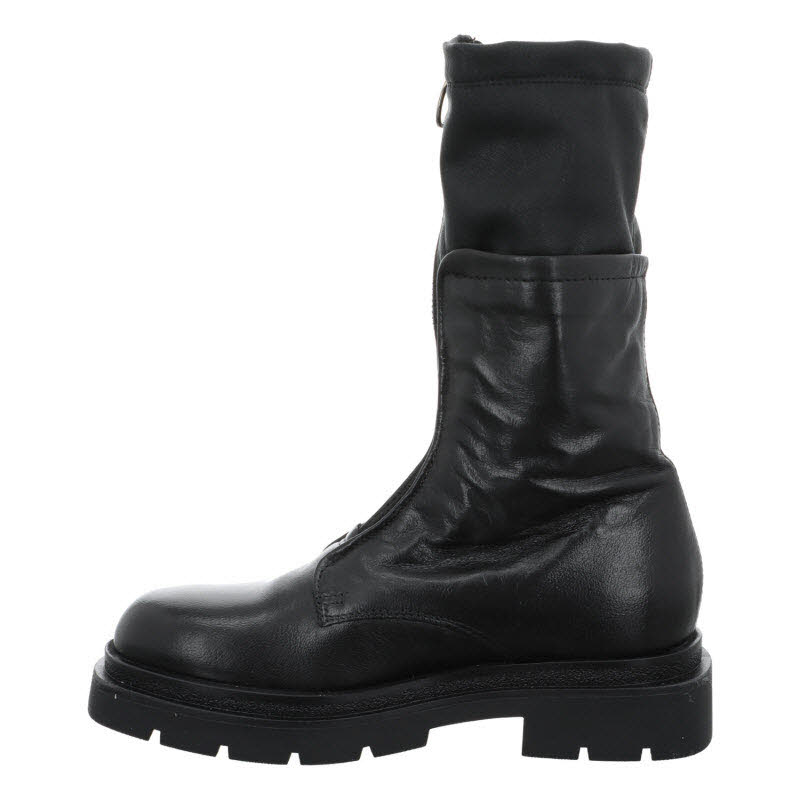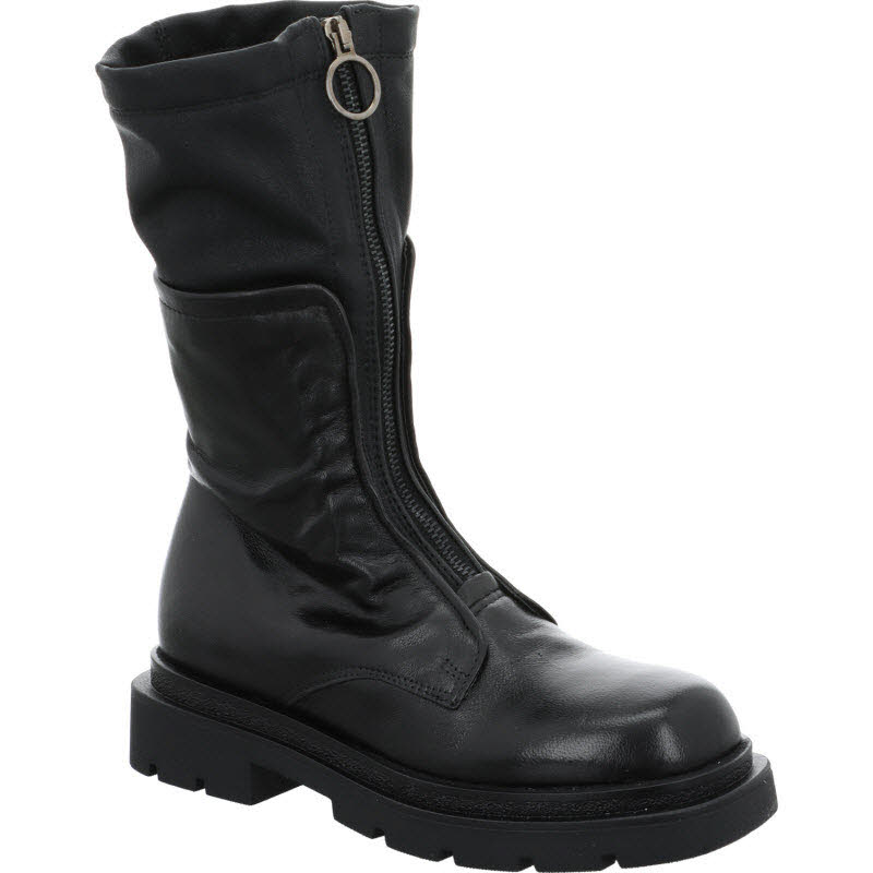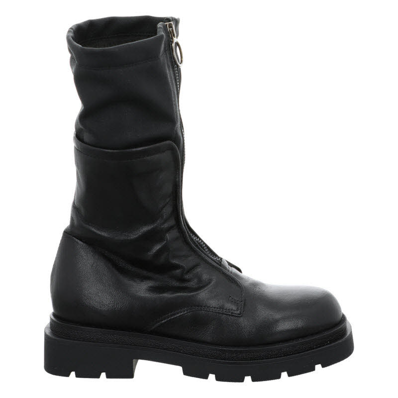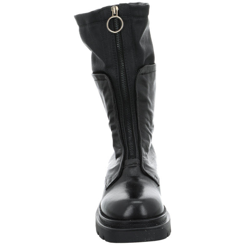 Dreiviertel Stiefel von "Mjus" in schwarzem Glattleder, mit Mittelzipp.