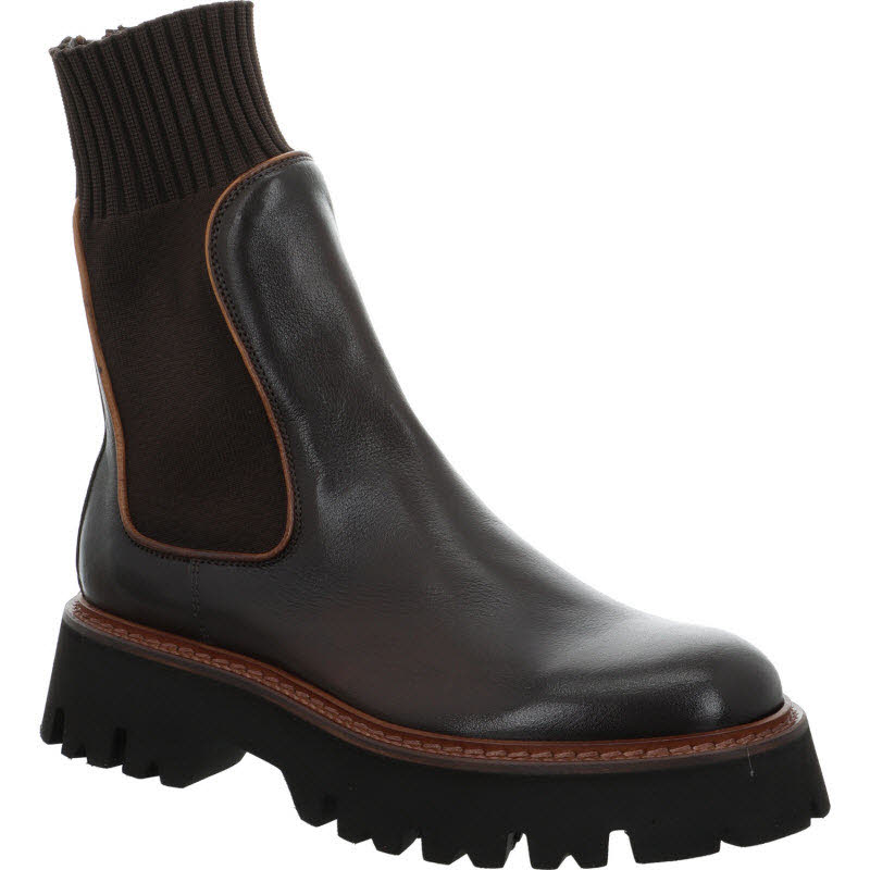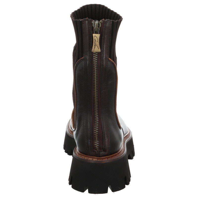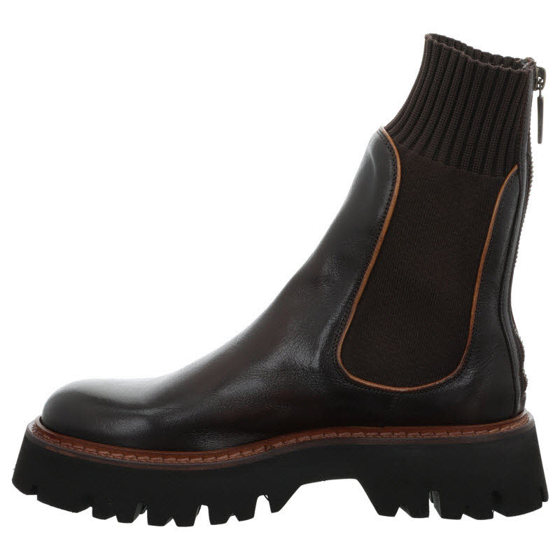 Stiefelette von der italienischen Schuhmanufaktur "Corvari" in dunkelbraunem Glattleder. Der Reißverschluss ist an der Rückseite angebracht.