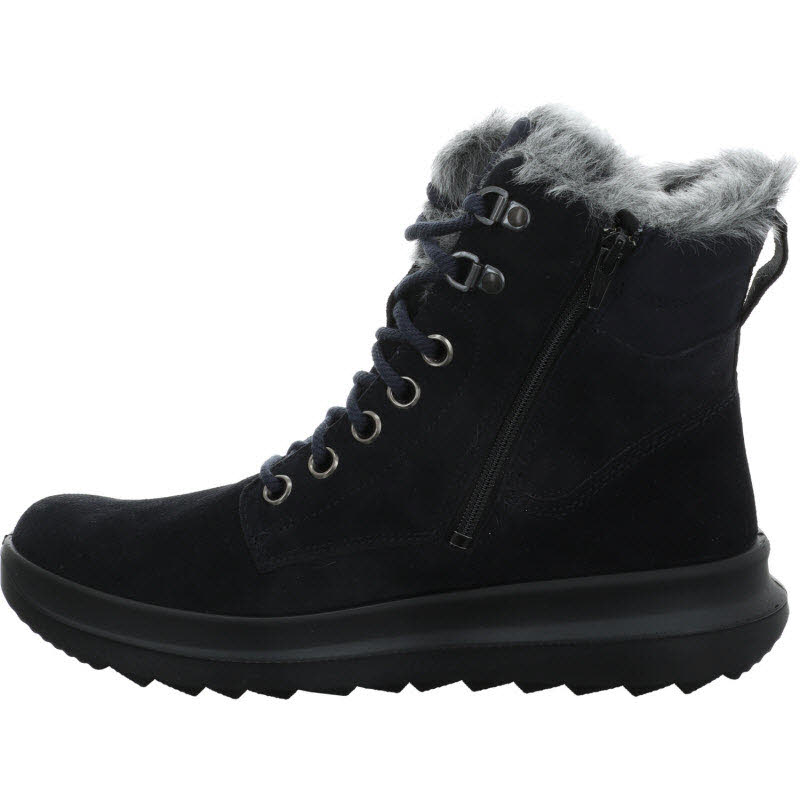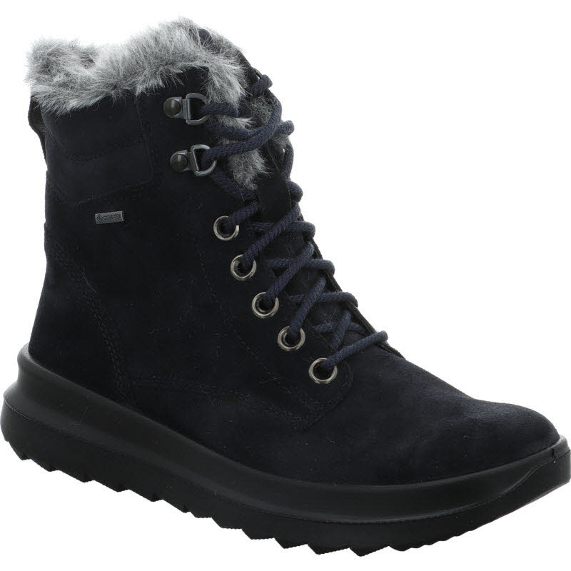Warmgefütterter und wasserdichter Schnürboot von Legero in dunkelblauem Veloursleder mit GORE-TEX Membrane.