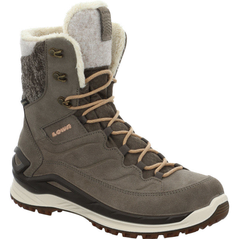 Warmgefütterte, wasserdichte Winterboots mit GORE-TEX Membrane von Lowa. Die griffige Sohle sorgt für sehr guten Grip auf Schnee.