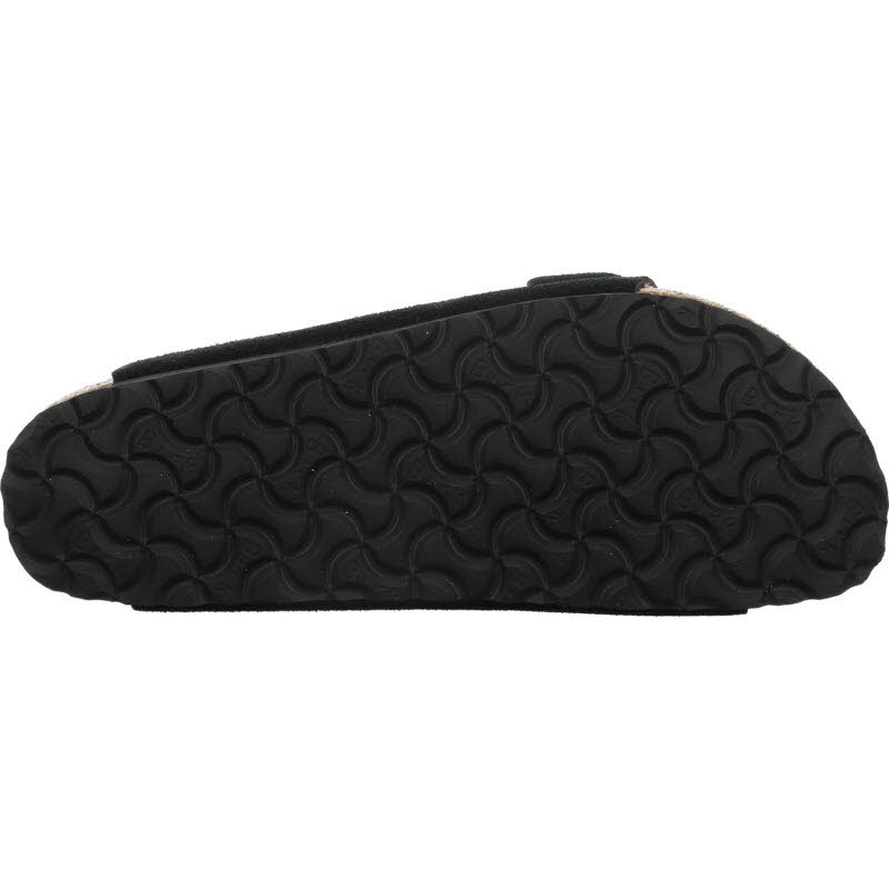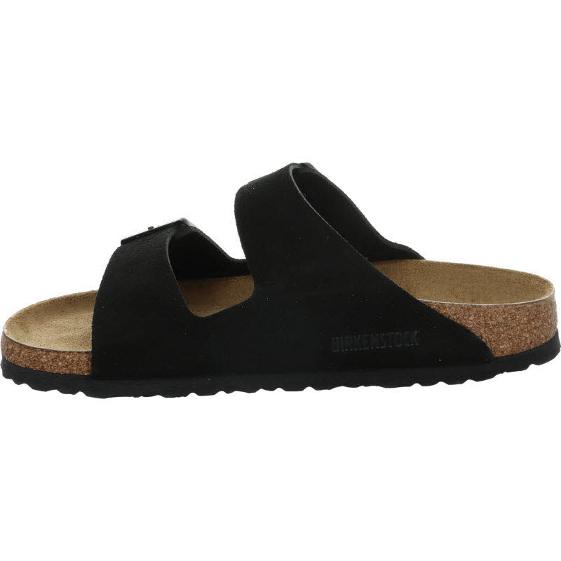 Der zweiriemige Klassiker von Birkenstock in schwarzem Veloursleder und mit weichem Fußbett.