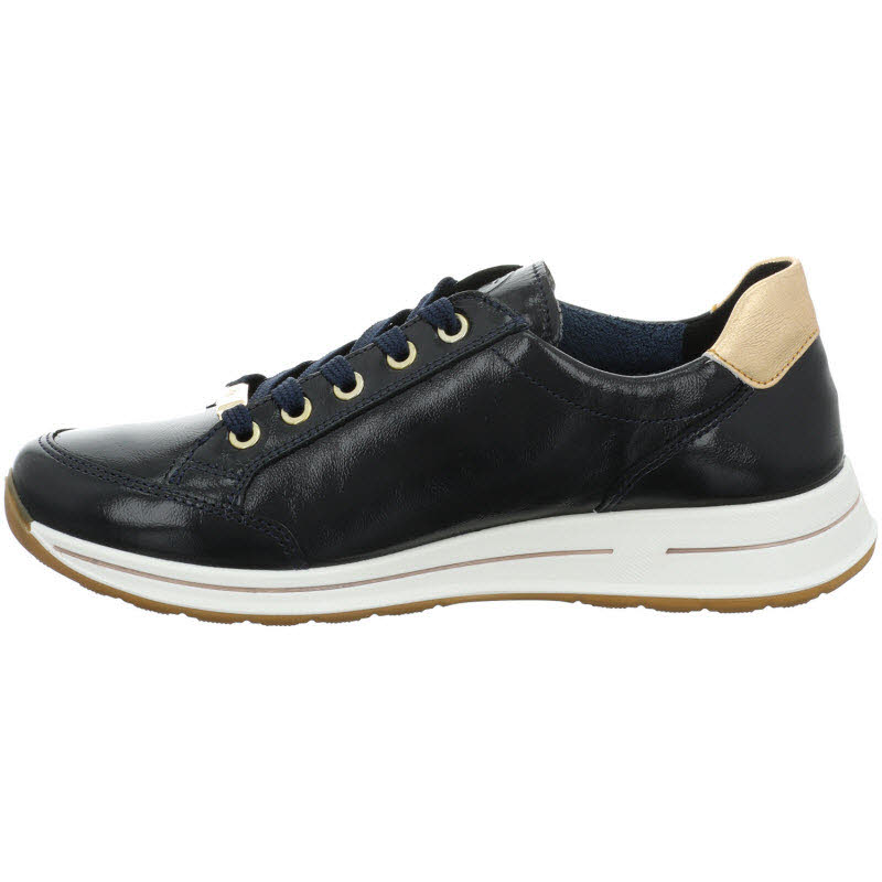 High Soft Sneaker in dunkelblauem Lack von Ara mit seitlichem Reißverschluss. In der Mehrweite "H" - für breitere Füße geeignet.