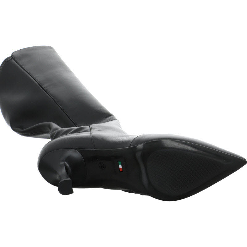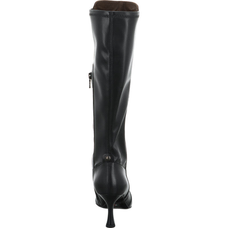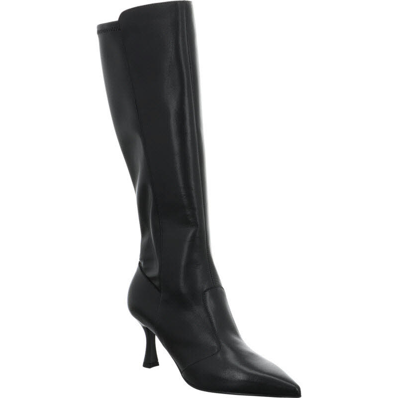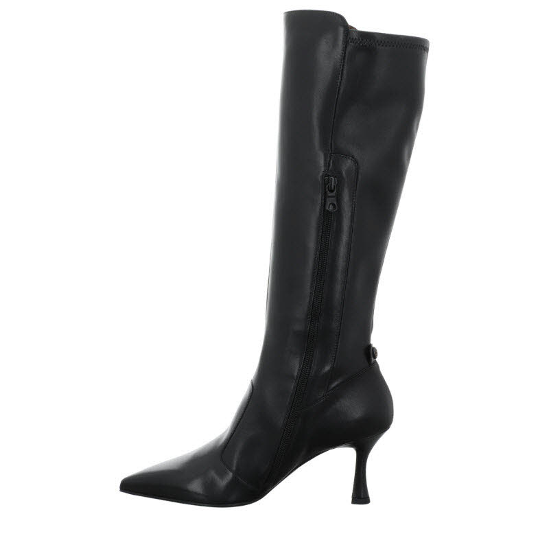 Eleganter Stiefel vom italienischen Hersteller "Nero Giardini" in schwarzem Glattleder und mit Stretcheinsatz beim Schaft.