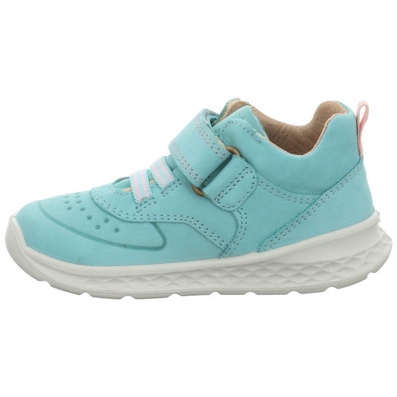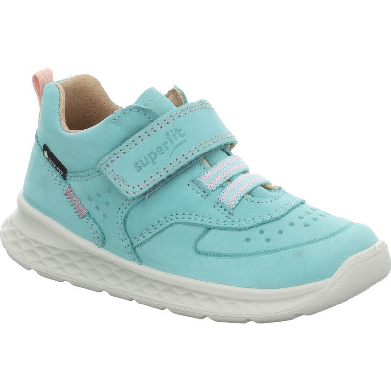 Wasserdichter Klettsneaker in türkisem Nubukleder mit GORE TEX Membrane.
