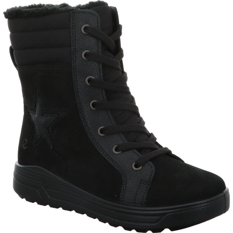 Warmgefütterter und wasserdichter Schnürboot von Ecco in schwarzem Nubukleder.
