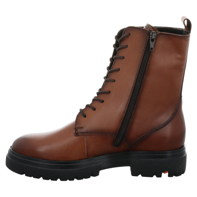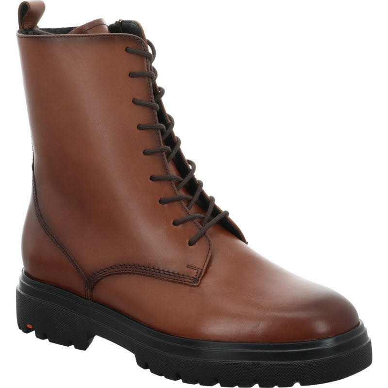 Mit Lammfell gefütterte Schnürstiefelette von Lloyd in braunem Glattleder.