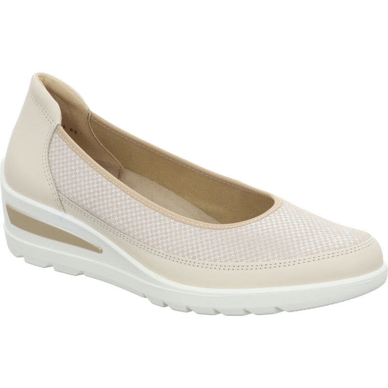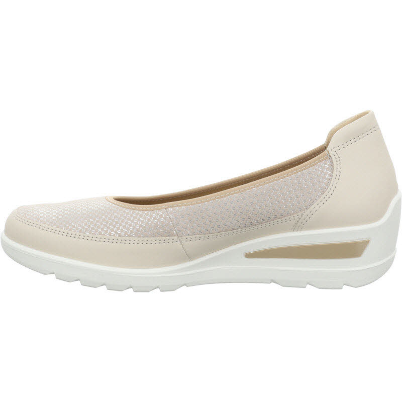 Ballerina in beige goldenem Veloursleder von Ara auf Keilsohle in der bequemen Mehrweite "H".