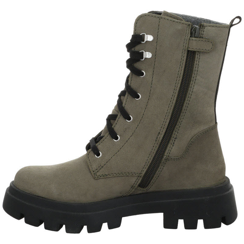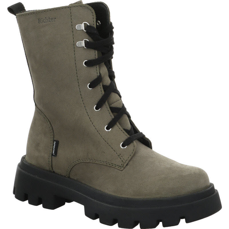 Schnürstiefel mit Reißverschluss an der Innenseite von "Richter" in dunkelgrünem Nubukleder. Wasserdicht dank SYMPATEX Membrane.