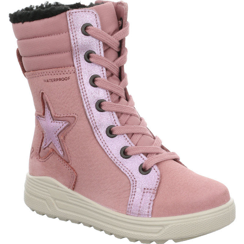 Warmgefütterte und wasserdichte Winterboots von Ecco in rosafarbenem Nubukleder.