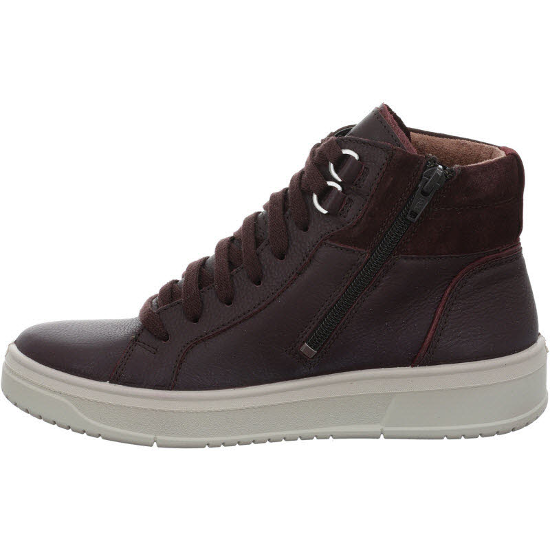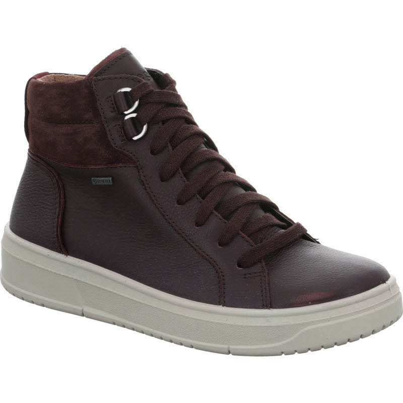 Knöchelhoher und wasserdichter Sneaker von "Legero" mit GORE-TEX in dunkelrotem Glattleder.
