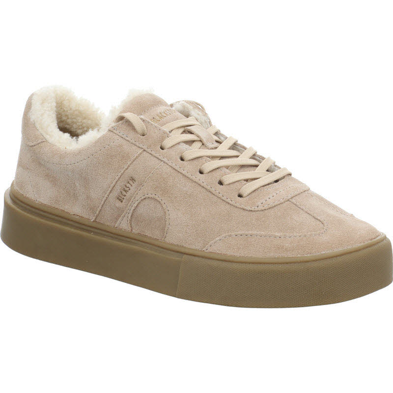 Warmgefütterter Sneaker von Blackstone in beigem Veloursleder.