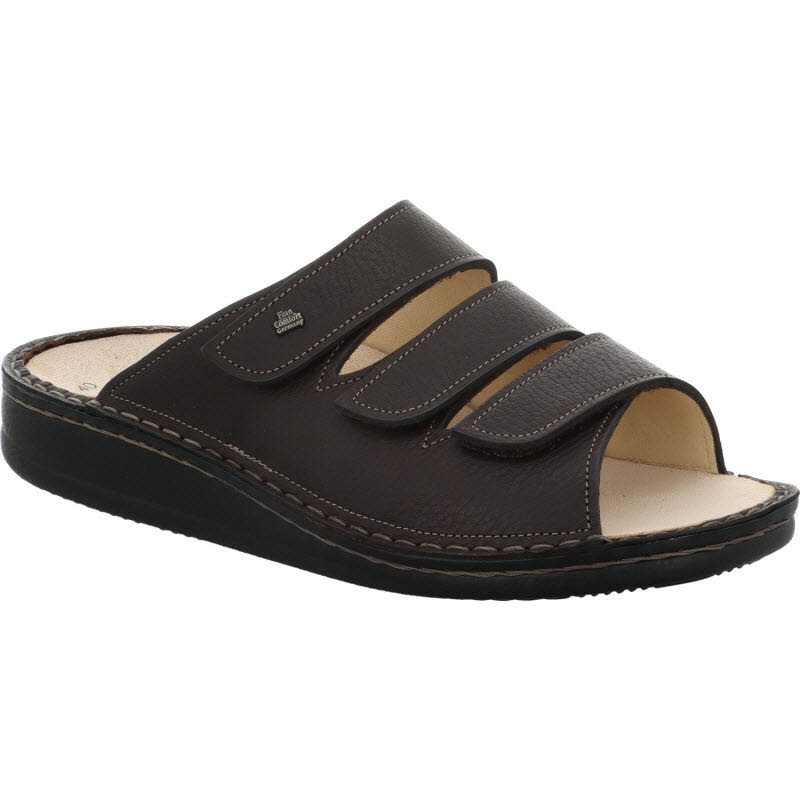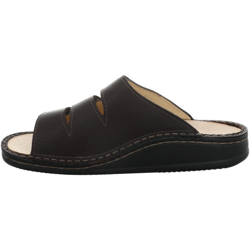 Fußbettpantoffel von "Finn Comfort" in braunem Glattleder und mit herausnehmbarem Wechselfußbett.