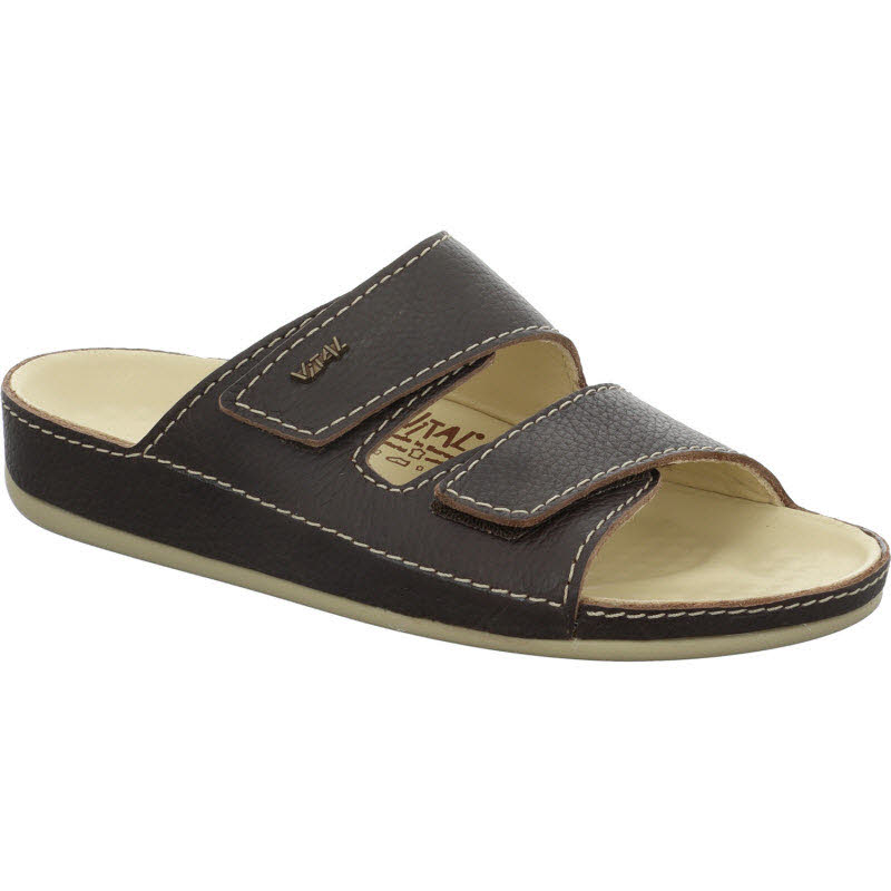 Fußbettpantoffel von Vital in dunkelbraunem Leder.