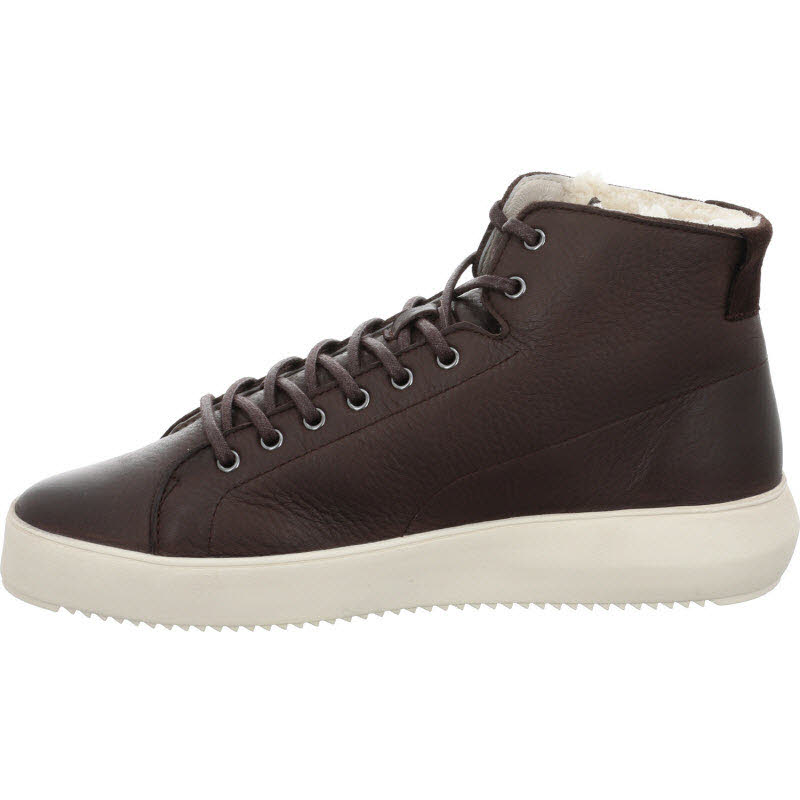 Mit echtem Lammfell gefütterter Sneaker von Blackstone in dunkelbraunem Glattleder.