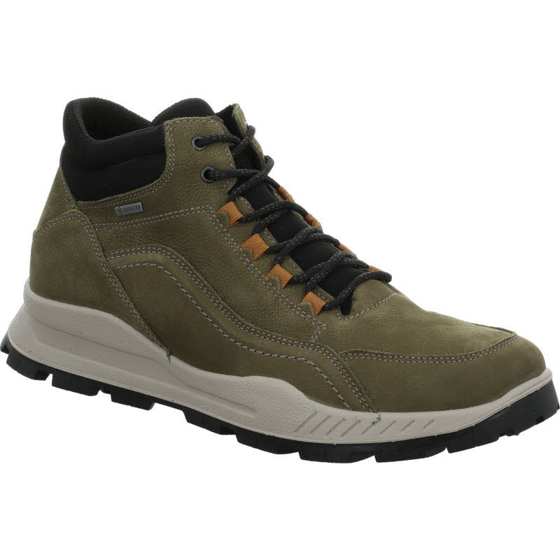 Warmgefütterte Schnürstiefelette von "igi&co" in grünem Nubukleder. Durch die atmungsaktive GORE-TEX-Membrane sind die Schuhe wasserdicht.