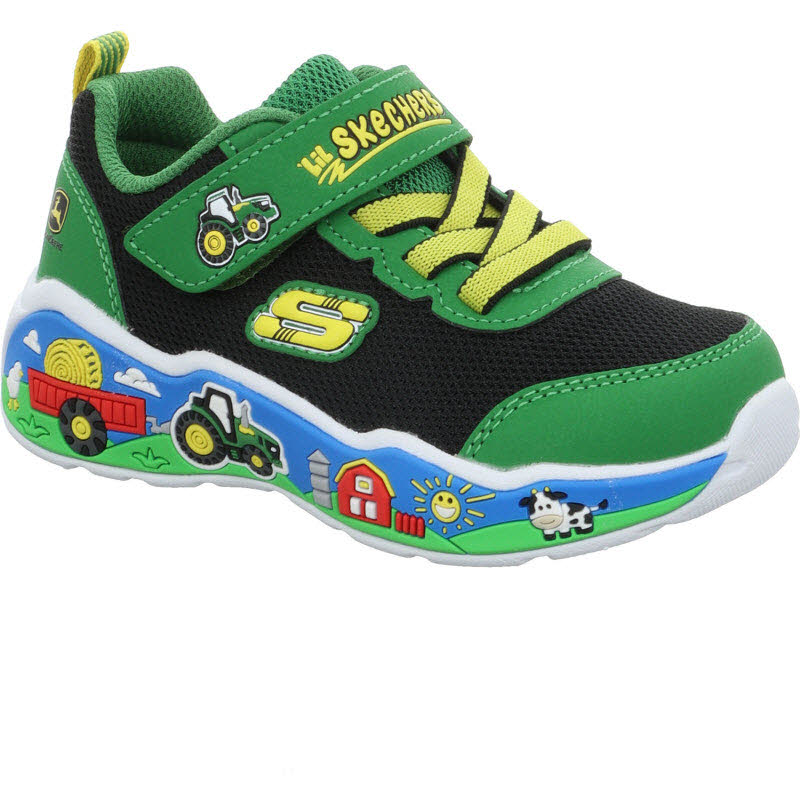 Halbschuhe von Skechers mit John Deere Motiv.