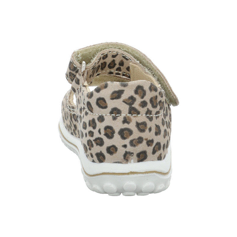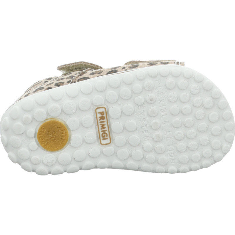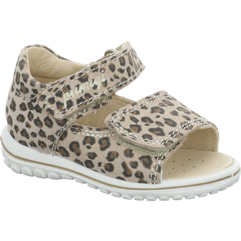 Lauflernsandale von Primigi in beigem Leder mit Leoprint.