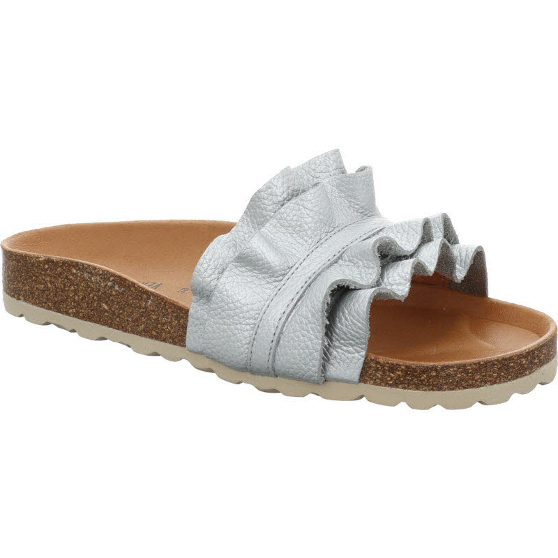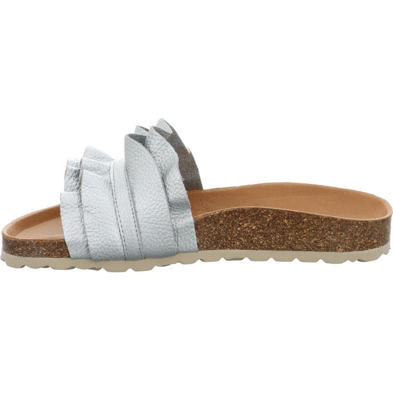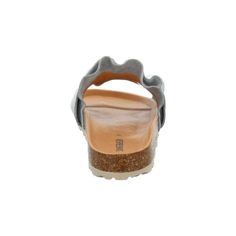 Einriemige Pantolette von "Verbenas" in silberfarbenem Leder. Hergestellt in Spanien.